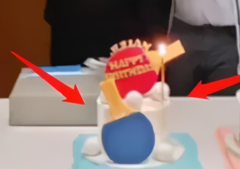其中有個小蛋糕,擺著球拍和乒乓球,做得拾分精致。