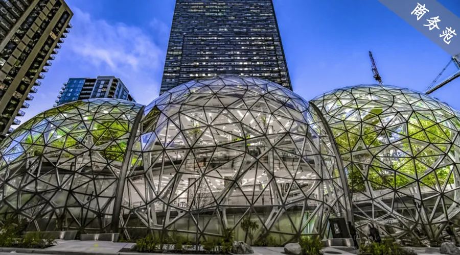 最近,亞馬遜新辦公樓的設計效果圖曝光了,壹座綠色植物環繞的螺旋狀高樓拔地而起,畫風在周圍壹眾方正的建築中顯得格外清奇。