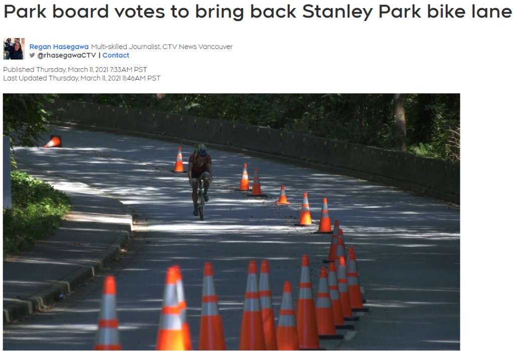 周三(3月10日)晚上,温哥华公园局委员以5票对2票通过了这项颇具争议的动议,并指示工作人员尽快落实相关措施。这条单车专线会保持到10月31日。