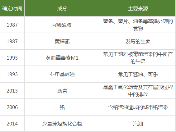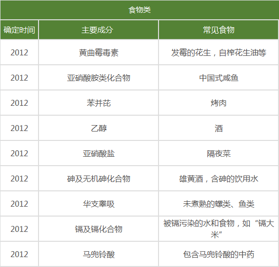 是指已經明確具有致癌作用的物質,常見的有黃曲霉素、中式鹹魚和馬兜鈴酸。