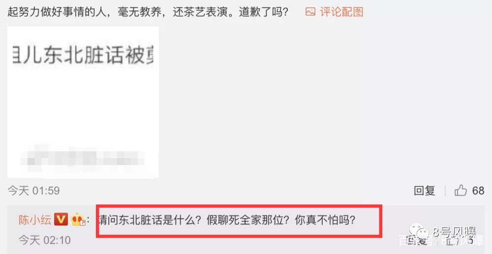 起因是有網友在評論區喊話陳小紜道歉,提到了她在《乘風破浪的姐姐2》裡表現不好,還被爆料用東北話罵人被節目組剪了的事兒,她直接懟了回去。