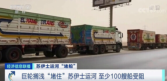 24日,埃及艾因·蘇赫納港口附近已有數拾輛貨運卡車被困在原地排隊等候。業內人士分析,相關部門應該可以調用足夠的資源來盡快解決這壹擱淺難題,樂觀估計可能需要幾天時間。
