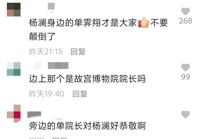 網友看了照片後,有人指出旁邊陪同的高層是故宮博物院院長單霽翔。有人表示差異,沒想到單院長還要對楊瀾如此恭敬,也有人表示單霽翔才是真正的大家,不要顛倒了。