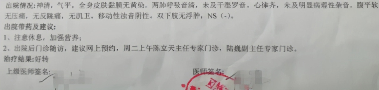 ▲ 王芳提供的出院小結