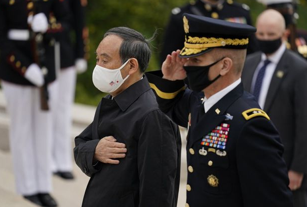 哈裡斯和他會談了壹段時間後又去陽台公開和菅義偉拍了照片,兩人非常親切;接著他還要見美國的壹位少將軍官,後者別有用意地拉著他去參觀了阿靈頓國家公墓,裡面葬有對日作戰死亡的拾幾萬名美軍士兵(包括轟炸東京行動的戰死士兵)。在菅義偉公墓獻花後壹段時間,他才去和拜登會談。