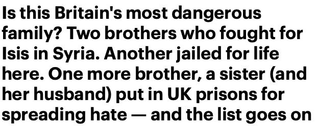 因為這個家庭中和罪犯同輩的11個人之中,不算上他居然有5個人都和恐怖主義有著或多或少的聯系。