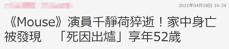 4月28號,有媒體報道,韓國演員千靜荷在家中猝死,享年52歲。