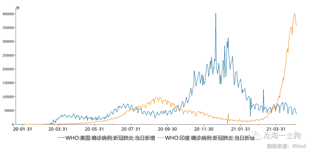 近期,全球疫情卷土重來,其中,印度的疫情最為嚴重,單日新增確診病例在5月1日達到了40.2萬人。目前,印度疫情的嚴重程度已經超過了去年年底的美國。