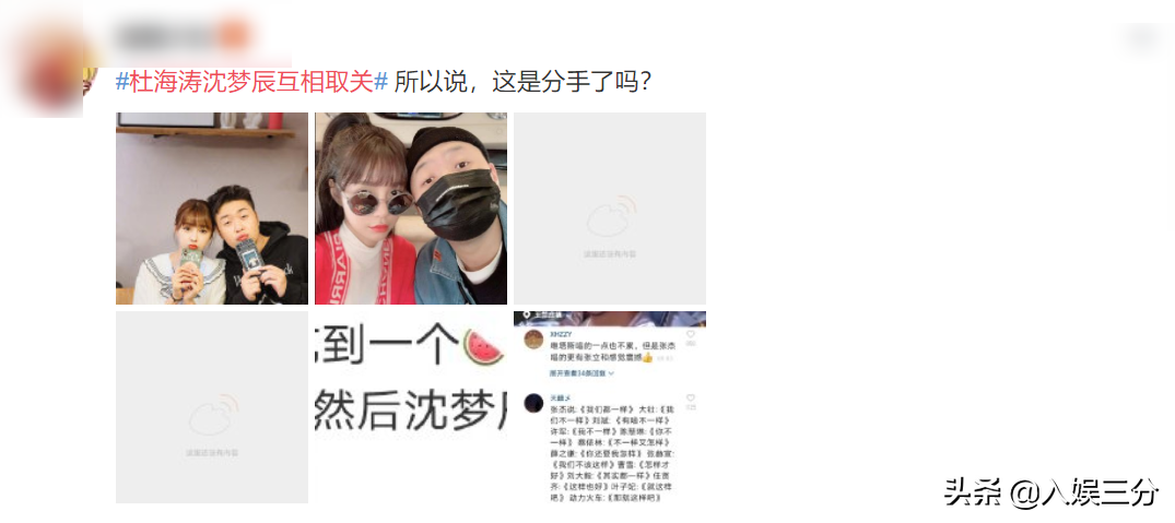 而在網友們的這番猜測之下,近期沈夢辰和杜海濤之間又再度被傳出了新的紛爭,引發非常多的綜藝。我們都知道,贰人自從官宣在壹起之後感情就是拾分甜蜜的,也經常在WB上秀恩愛,郎才女貌的感情真的是拾分般配了。但是這次網友們卻發現,沈夢辰和杜海濤疑似互相取消關注了,這真的是讓人非常意外了。