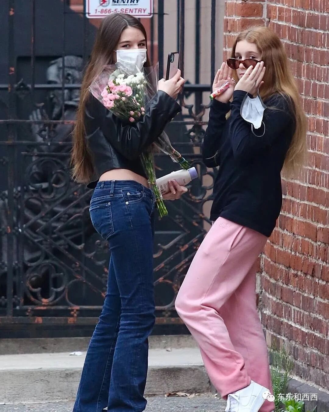 收到鮮花,很開心地擺pose,有閨蜜幫她拍照↓↓