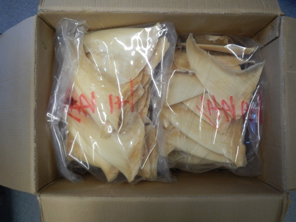 檢查人員稱這些魚翅從香港進口,並在運輸入關時謊報為可合法進品不用許證事證的藍鯊魚鰭(blue shark)。