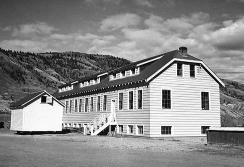 ↑這張拍攝於大約 1950 年的資料照片顯示的是坎盧普斯印第安寄宿學校教學樓。