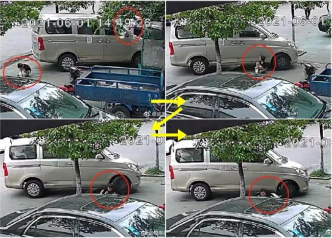 浙江省海寧市男童成成(紅圈示)遭父親倒車輾過。