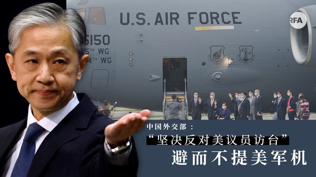 汪文斌的回应,只对三名议员访台表示坚决反对,但就没有提美军军机。