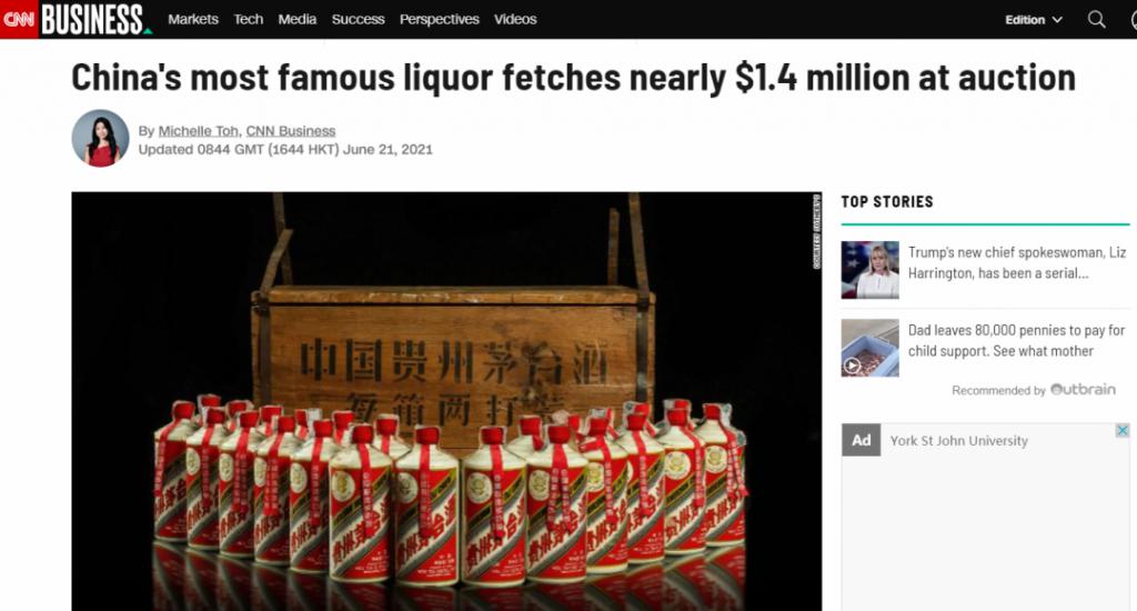 據蘇富比拍賣行介紹,這批拍品包括 24 瓶 1974 年 " 葵花 " 牌茅台酒。