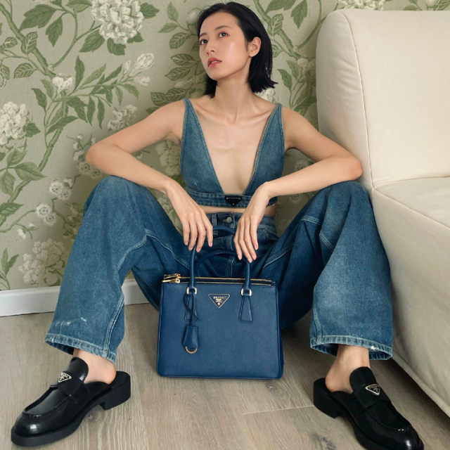 時髦girl周雨彤穿了壹身Prada的牛仔套裝,性感又率性。