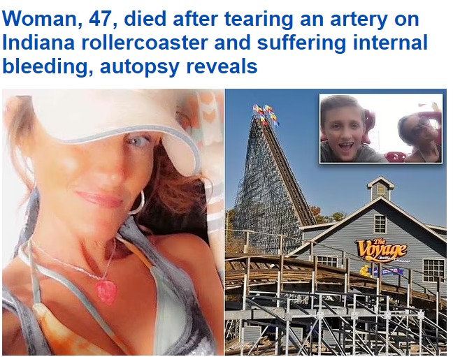 (加西網綜合)根據周叁公布的屍檢報告,壹名 47 歲的婦女在上個月乘坐印第安納州過山車後神秘死亡,屍檢結果顯示,她的動脈撕裂並出現內出血。