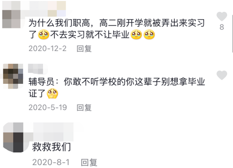 更悲哀的是,這樣深陷於高強度、強制性的“實習”,卻壹點聲音也發不出來的職校學生,並不只余某壹個。