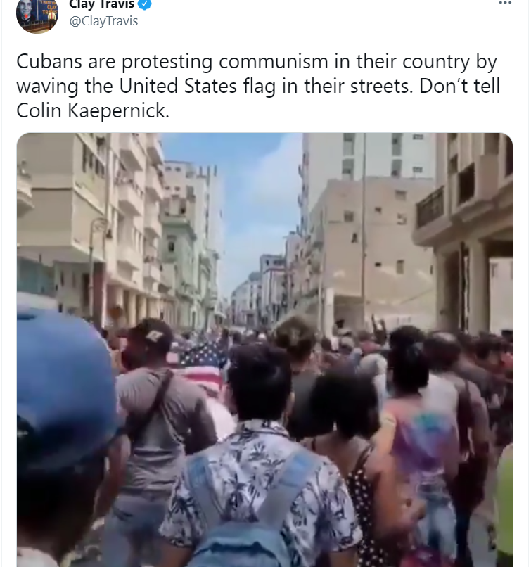 古巴感染人數持續創新高,受疫情影響,經濟崩潰,民生難以為繼,以及古巴人民對當局在疫情期間的處理感到憤怒,突然爆發的古巴史無前例的大規模反政府抗議活動繼續。而且據報道古巴警察也開始加入抗議者隊伍,要求結束古巴的共產主義獨裁統治。