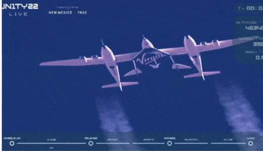 北京時間7月11日23點26分,VSS EVE攜帶VSS Unity攀升到45000英尺左右高空,飛船和母機分離。飛船上的火箭開始噴火,為飛船提供動力。