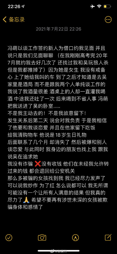 7月17日都美竹又再次放出自己與吳亦凡方的聊天記錄,並放出吳亦凡方提供的和解協議。提到這份協議中的用詞完全是為她准備的壹份“認罪書”。而讓她收款後轉賬的操作,也是為了把她送進監獄。- 新聞來源於其它媒體,內容不代表本站立場!