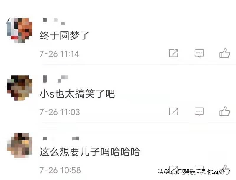 看到視頻後,網友也被徐熙娣的幽默細胞逗樂了。有網友大呼:“小S太搞笑了”,也有網友感歎她“終於做夢了”還嘲諷:“我好想要兒子。哈哈哈哈。”