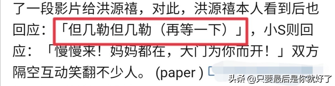洪源禧還與徐熙娣合作“完成演出”。他和徐熙娣互動說,“等壹下”。聽完之後,徐熙娣大喊:“慢慢來,媽媽來了”,說“門給你開著”。
