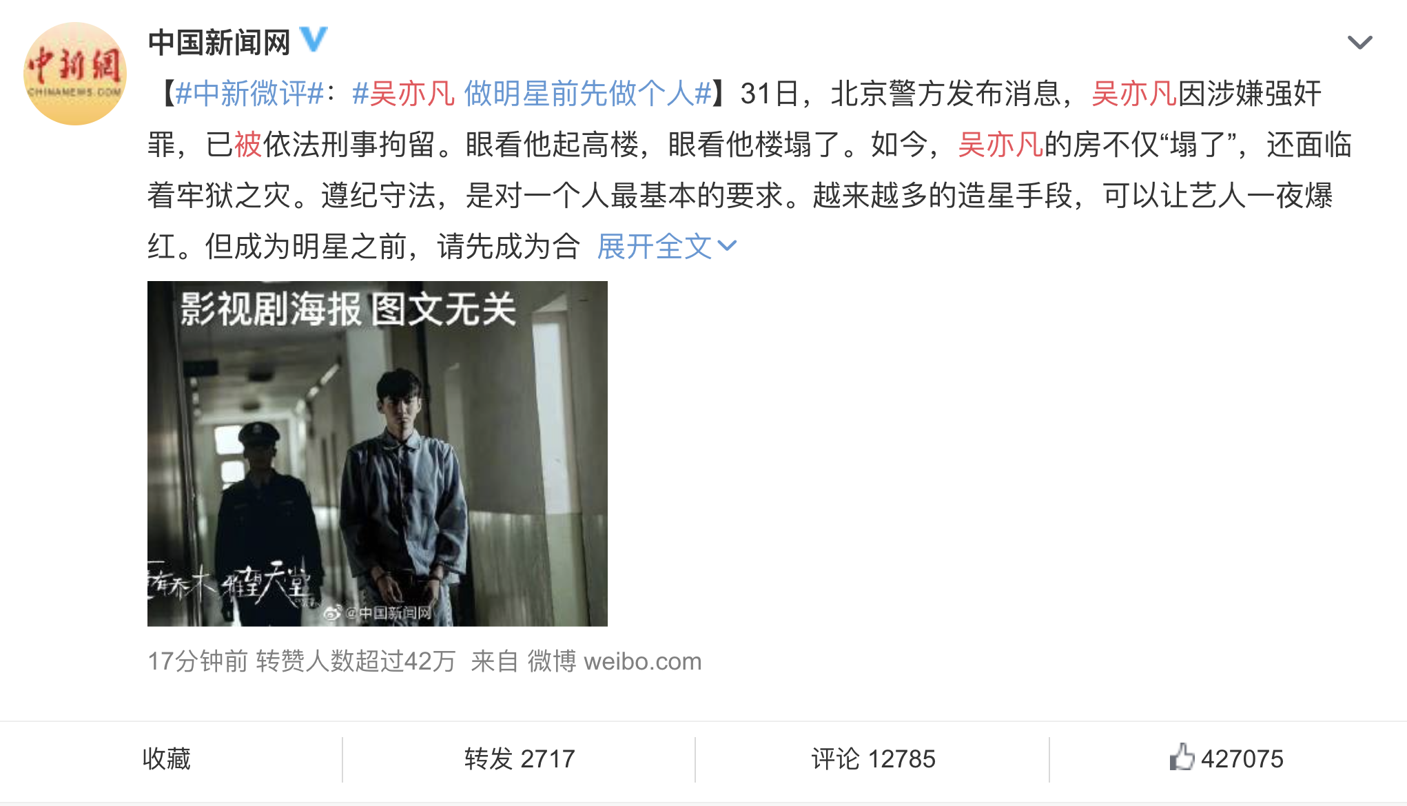 中新官媒也發文表示:做明星前先做個人!