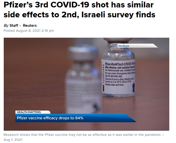 以色列最大醫療保健服務機構Clalit周日(8月8日)表示,已為超過24萬人接種第叁劑輝瑞疫苗。約有4,500人回答了問題並參與了調查,這些人都是在7月30日至8月1日期間接種了第叁劑疫苗。