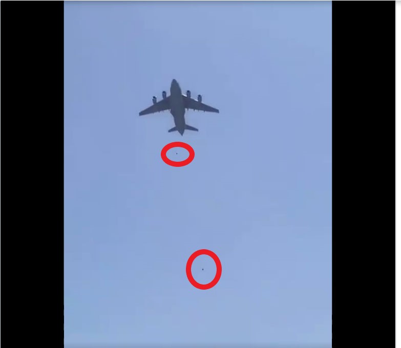 於是,全世界都看到了這樣慘絕人寰的場面,軍機起飛後,,兩個黑影,從空中跌落,人如螻蟻,命若塵埃。