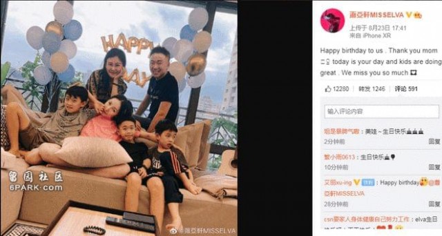 8月23日,蕭亞軒分享42歲慶生照並附文:祝我們生日快樂,謝謝媽媽,今天是你的日子,孩子們都很好,我們都非常想念你。