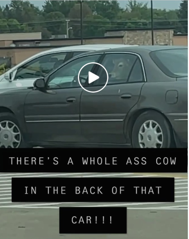美國民眾在排隊買麥當勞時,意外看到前車後座竟然有壹只牛。