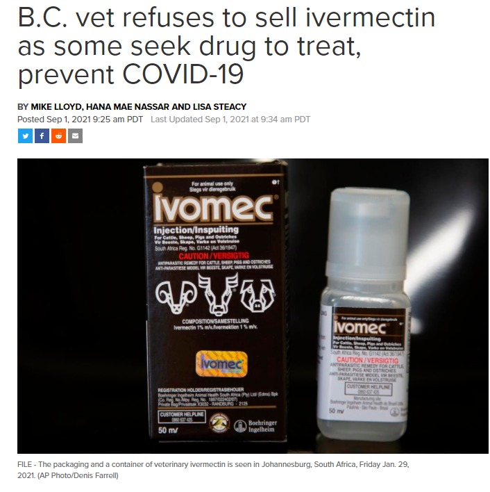 周贰,加拿大衛生部發布了壹份咨詢報告,稱已經“收到了有關使用獸用伊維菌素預防或治療 COVID-19 的報告”。