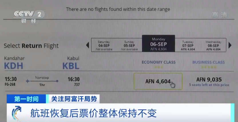 阿裡亞納航空公司官網顯示,重新恢復航班後,機票價格整體保持不變。5日當天,喀布爾國際機場已經能看到有“阿裡亞納航空公司”的客機起降。