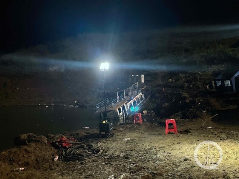 ▲9月19日晚,貴州省六盤水,失事的8015船已被打撈出水。圖片來源/受訪者供圖