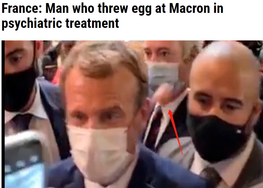 美聯社稱,這名男子在扔出雞蛋時作出了政治性表態,他在事發現場高喊出“革命萬歲”(vive la révolution)的口號。