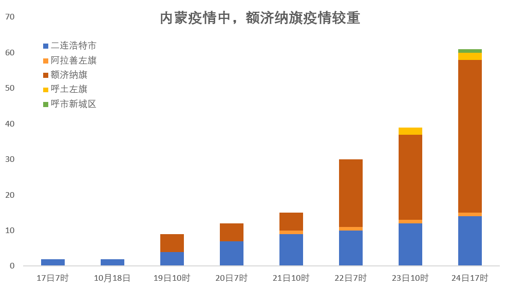 截至10月24日19時,額濟納旗累計確診病例已增至43例,是此次疫情中病例最多、增勢最猛的地方。目前,防疫仍處於攻堅階段,當地相關流調、排查等工作仍在進行中。