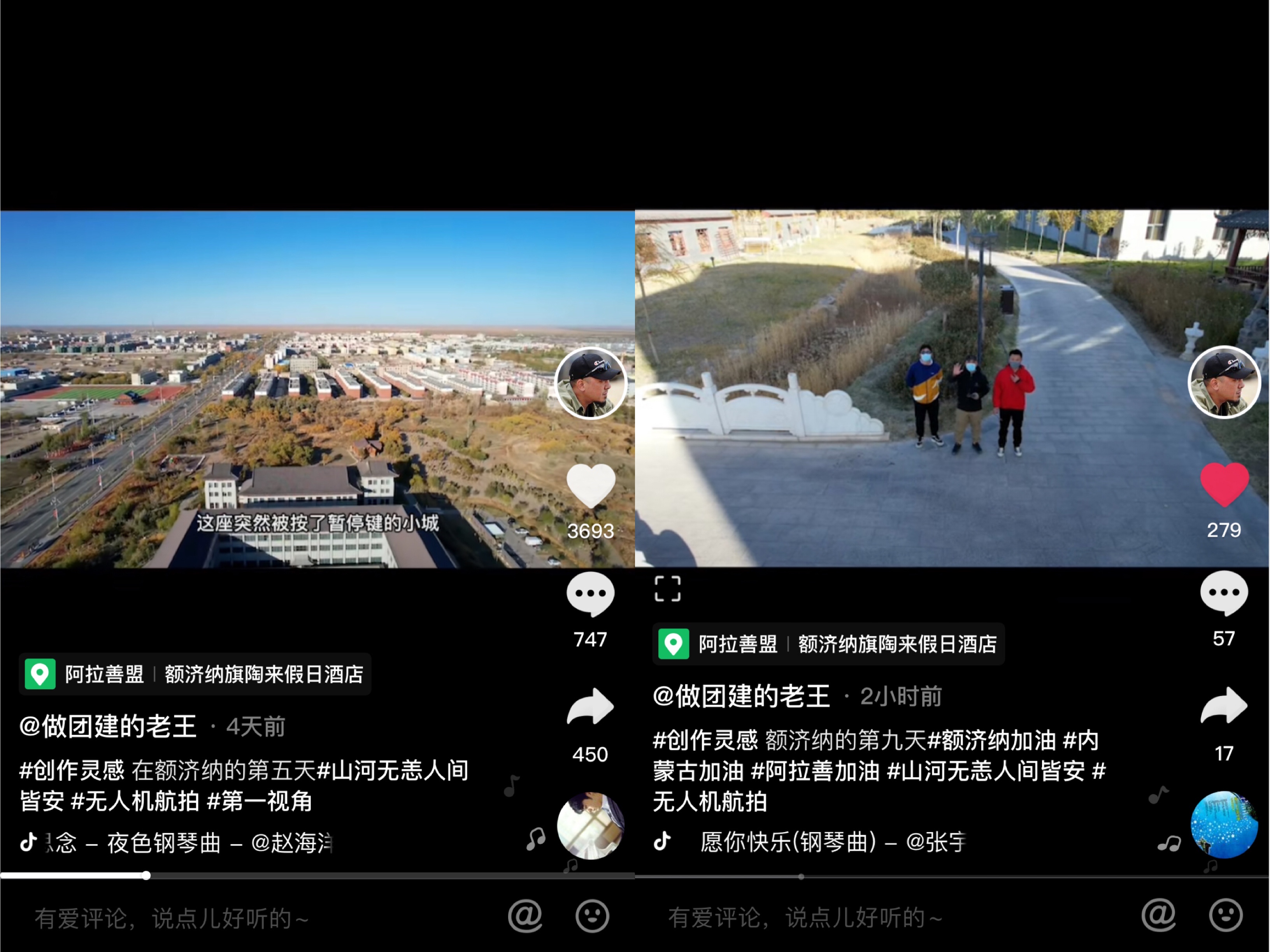 他從事團建拓展訓練工作,這次出行本是帶壹家公司同部門的33人出來團建。10月16日,壹行人才抵達額濟納旗,玩完18日壹早想離開時,“發現走不了了,這邊已經交通管制不讓出城,就趕緊又找酒店住下來,壹直住到現在。”