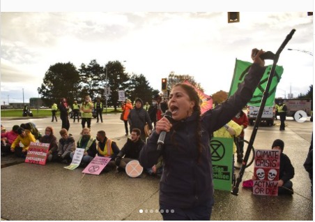 呼吁加拿大结束化石燃料补贴并要求采取气候行动的温哥华“灭绝叛乱”,在过去两周每天都在抗议,作为其十月活动的一部分。