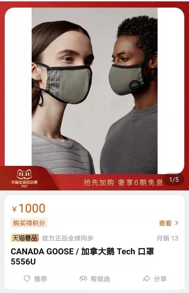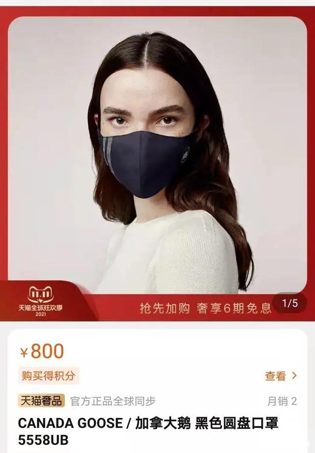 據了解,奢侈羽絨品牌加拿大鵝天貓旗艦店上架兩款口罩產品,最高售價達1000元。
