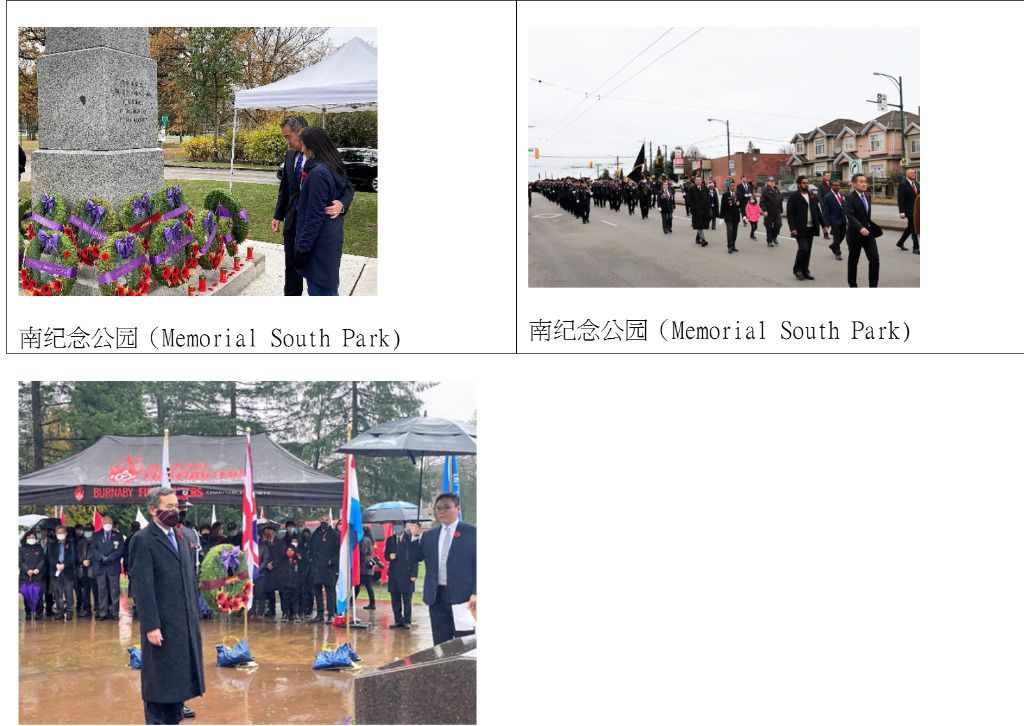温哥华 (2021年11月12日)- 今年是罂粟花作为加拿大国殇日纪念标志的第100周年。按照传统,国殇纪念日当天,加拿大全国各地都有各种各样的庆典纪念活动。在刚刚过去的加拿大国殇纪念日,卑诗自由党党领候选人、温哥华兰加拉区省议员李耀华参加了温哥华南纪念公园、华埠、和本拿比中央公园和平大使韩战纪念碑(Ambassador of Peace Korean War Memorial)等地的多个纪念活动。