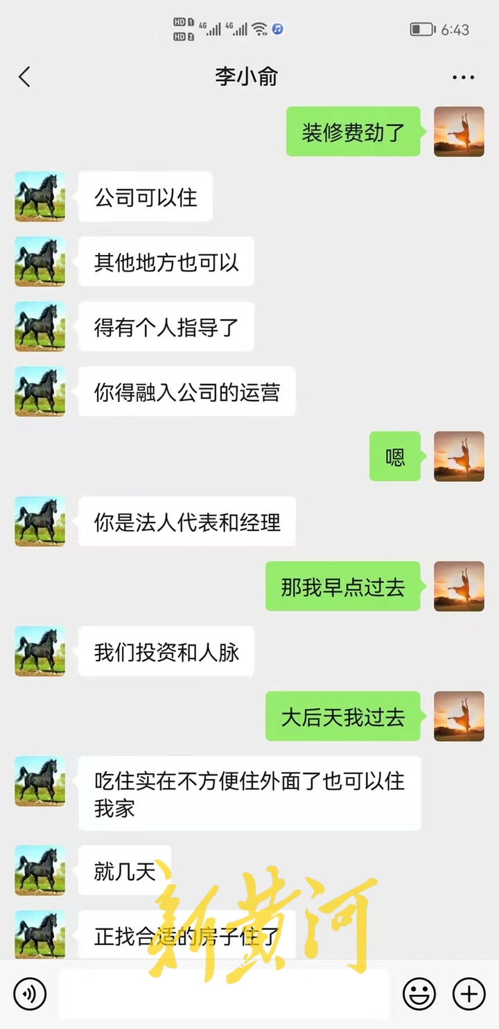 “當時他倆說讓我站在前台,他們負責利用身邊資源拉業務。李曉瑜承諾我壹年營業額10萬元以內都歸我,超出10萬元的部分,分紅是我拿叁他們拿柒,起初每月保底給我5000元工資。”雒女士告訴新黃河記者,當初開辦公司時,自己出資了壹萬元,在美鴻公司占股5%,艾業公司占股30%,並且擔任這兩家公司的法人代表。美鴻公司和艾業公司的大股東均為臨縣潤業財稅管理有限公司(以下簡稱潤業公司),後者分別占股75%、70%。2019年12月以前,潤業公司的法人代表是白某,白某則是李曉瑜的親戚。“這叁家公司成立之後,其實壹直都是李曉瑜實際經營,喬金鋒在背後管理。”此外,雒女士還回憶說,在公司經營期間,喬金鋒曾多次與自己發生過男女關系。“我在公司裡面還有壹個針灸室,我在給喬金鋒做中醫理療時,他就多次對我動手動腳。有壹次他喝酒後,在針灸室強行和我發生性關系,之後從微信上給我轉了500塊錢,半個多月又給我轉了1000塊錢。喬金鋒跟我說,只要我跟他好,他就會對我好的,讓我壹切都聽他的安排,以後他會想辦法讓我去主導經營公司。所以我對他心生好感,之後對他言聽計從,又繼續保持了壹段時間的親密關系。”雒女士表示。
