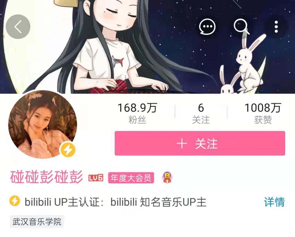 在 B 站擁有 168.9w 粉絲,全平台粉絲更是超過了 1000w~