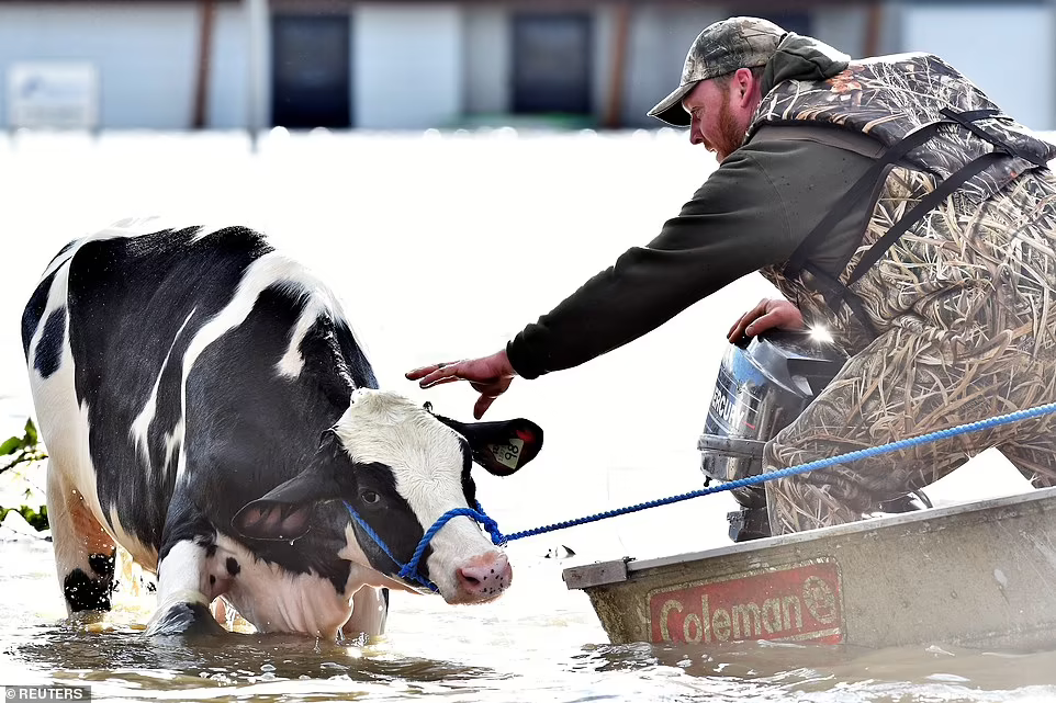 船只、小艇、噴氣式滑雪板甚至是懸停船營救被被洪水困住的數只牛。這救牛的場面還驚動了路透社:有結伴劃船來幫忙的: