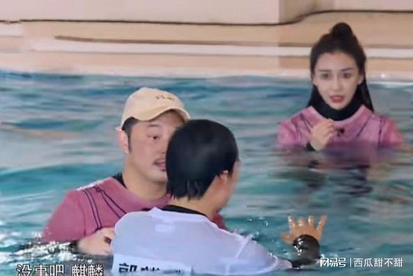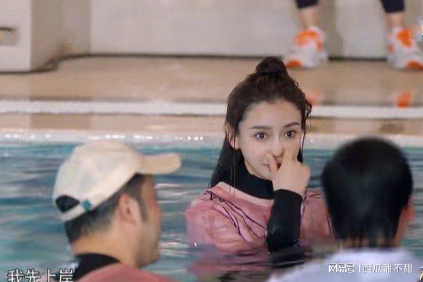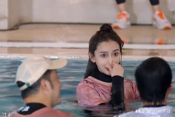 在楊穎接受懲罰落入水中,就像是出水芙蓉壹樣漂亮,穿著粉色的衣服在泳池中,凸顯了白皙的膚色,可等楊穎抬頭時鼻子突然變形。因為鼻腔裡進的有水,所以楊穎用手猛烈的按壓鼻子導致變形,隨後發現後伸手救場都晚了。
