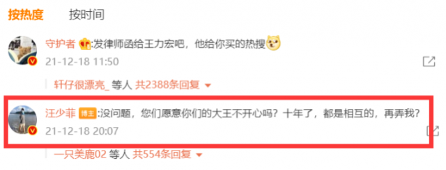 在大S對媒體回應後,汪小菲似乎坐不住了,在自己維權的動態下回復說:“沒問題,您們願意你們的大王不開心嗎?拾年了,都是相互的,再弄我?”