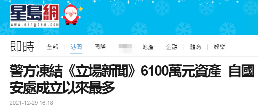 據香港星島網報道,香港警方國安處今日(29日)拘捕多名香港網媒“立場新聞”現任或前任高層,下午16時警方在灣仔警察總部召開記者會,警方國安處高級警司李桂華表示,警方國安處今晨在全港各地方采取執法行動,針對“立場新聞”及其他人串謀發布多篇具煽動性文章,以刑事罪行第9及第10條“串謀發布拘捕煽動刊物罪”拘捕3男4女,包括編緝及時任董事。報道稱,警方按法例凍結“立場新聞”6100萬港元資產,是國安處成立以來偵破案件中金額最多的壹次。