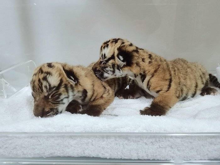 據廣東粵北華南虎省級自然保護區介紹,兩只虎寶寶出生在2021年12月31日23時後,父親是來自洛陽的“小滿”,母親是來自上海的“夢夢”。這對“英雄夫妻”此前已於2021年3月和9月生產了“圓圓”和“慶慶”兩只華南虎寶寶。