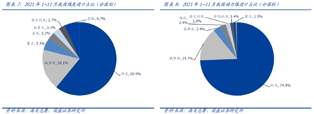 作為我國煤炭/動力煤第壹大進口來源國,2021年1~11月,我國進口印尼動力煤1.77億噸,同比增長54.4%,占進口動力煤總量的74.4%;總量上看,我國去年1~11月累計進口印尼煤1.78億噸,較去年同期增加6361萬噸。