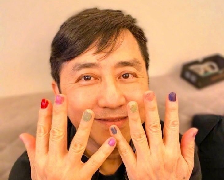 庾澄慶高高舉起自己的雙手,展示拾個不同顏色的指甲,伍顏六色的好特別。他還透露連腳上也被女兒塗了指甲油,看起來庾澄慶非常開心,言語中都是驕傲和幸福,可見其對女兒的寵愛。